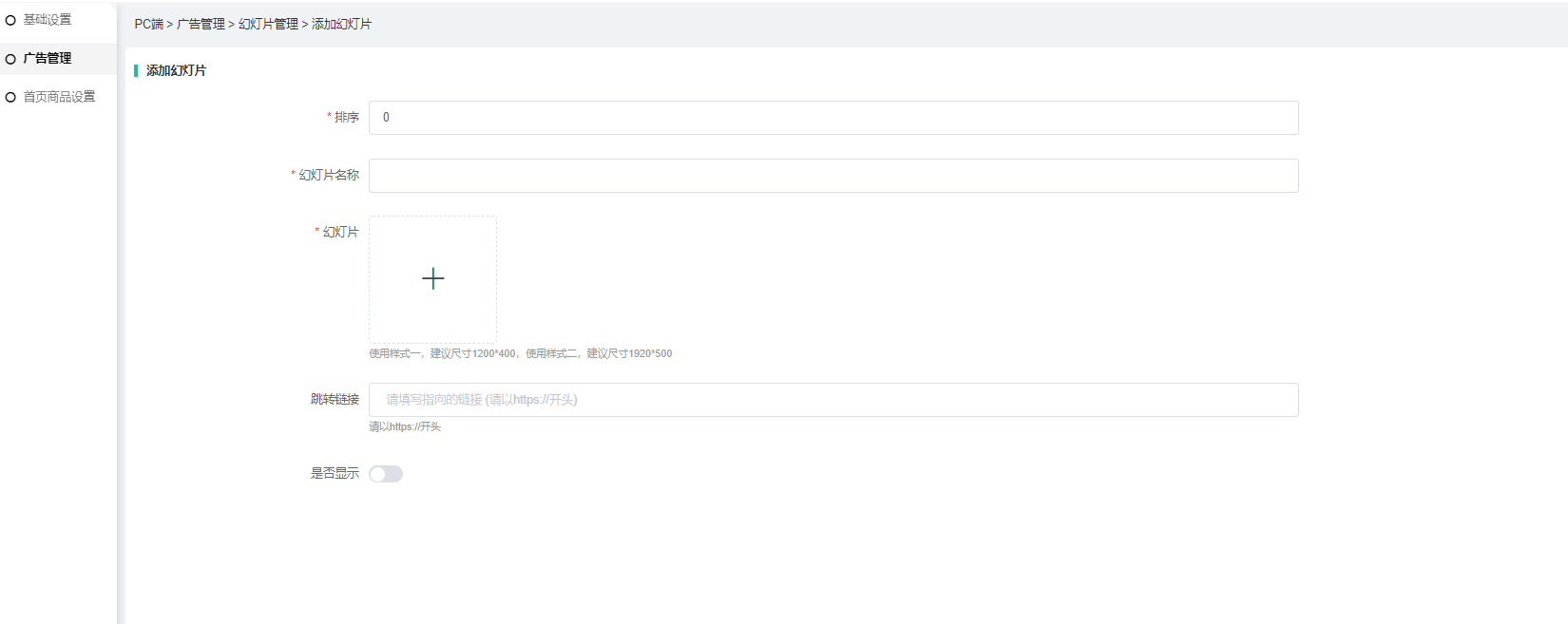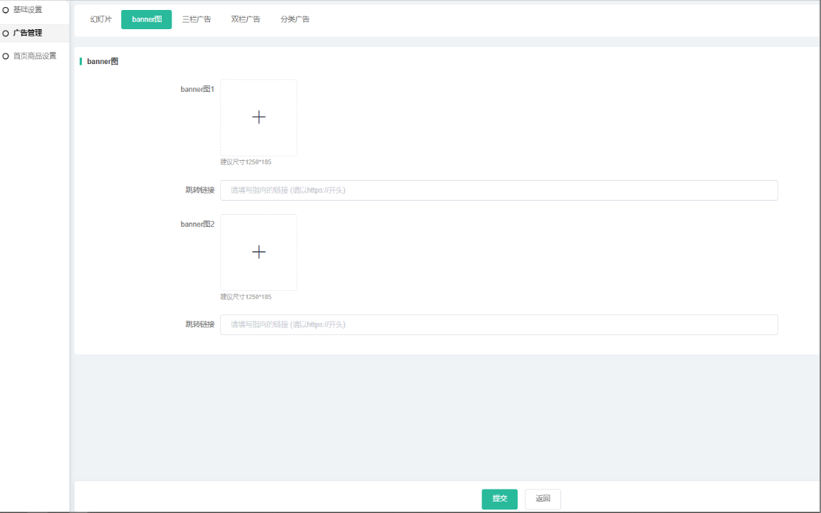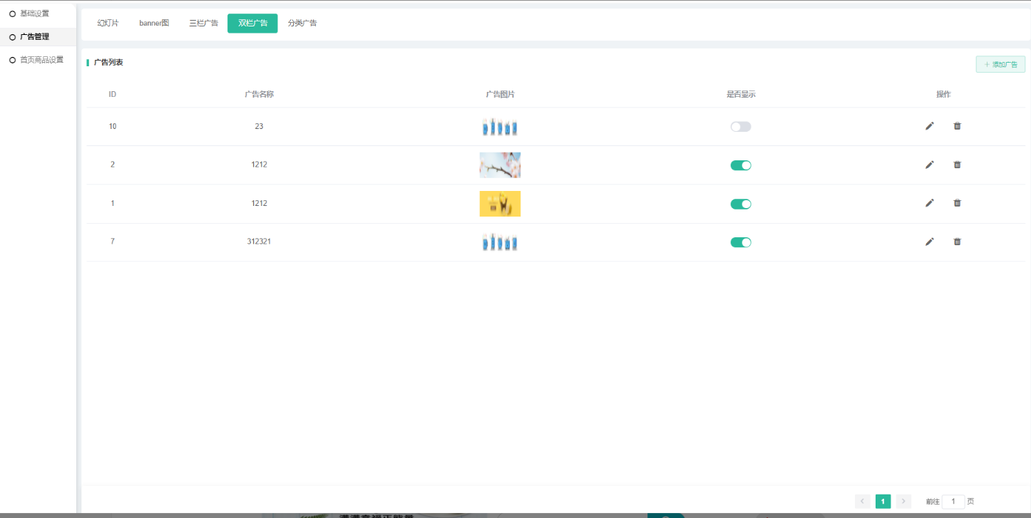 以下为PC端模板1的广告设置。
