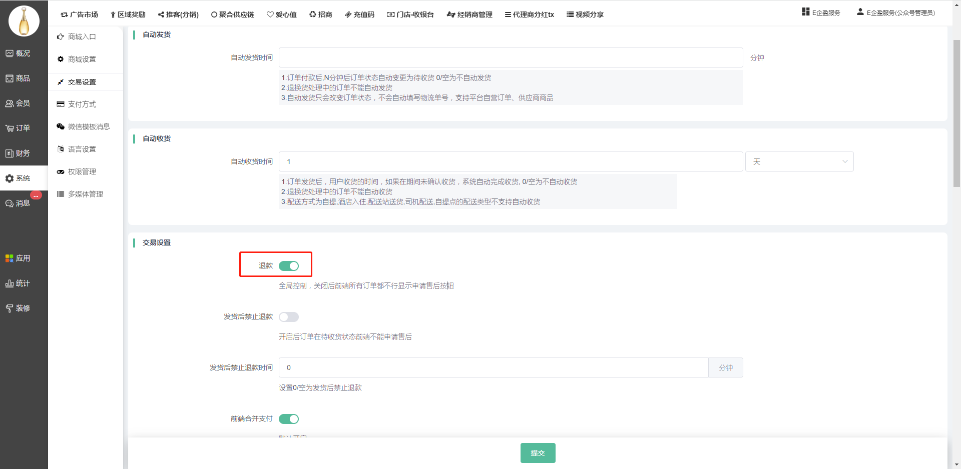 待用户把货寄到退货地址,我们在操作给到用户退款