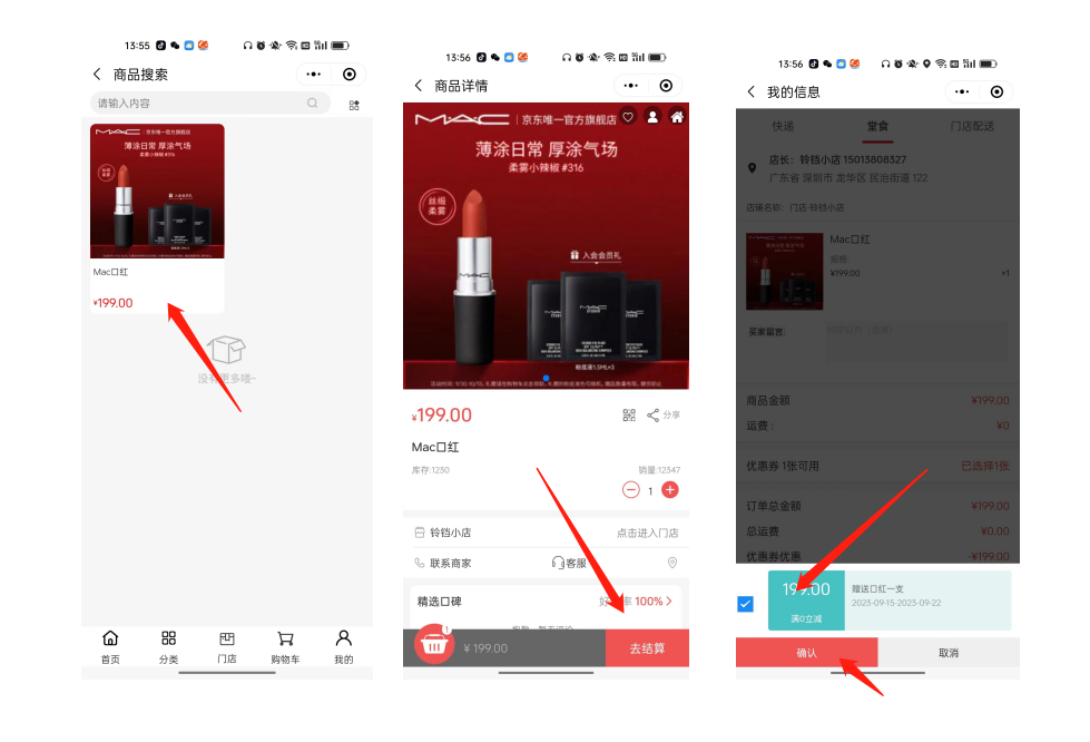 2.进入到商品,点击商品,下单,选择优惠券,确认支付